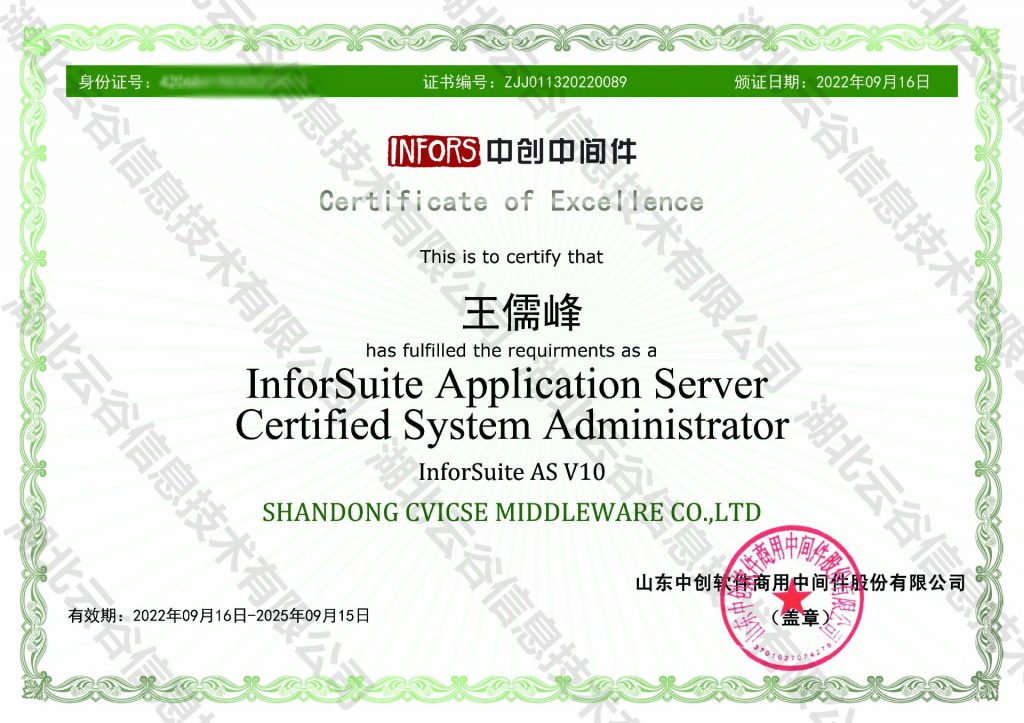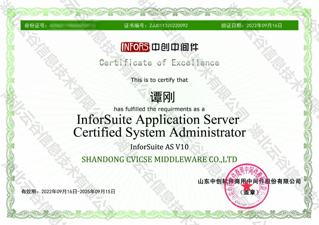 谭刚、王儒峰等8名员工获中创中间件AS V10认证证书